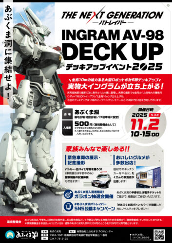 昨年大好評を博した「パトレイバーデッキアップイベント」が、今年もあぶくま洞で開催されます!