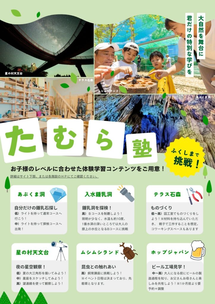 ムシムシランドに関する詳細は公式HPをご覧ください:https://www.city.tamura.lg.jp/soshiki/20/